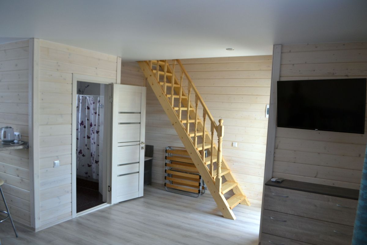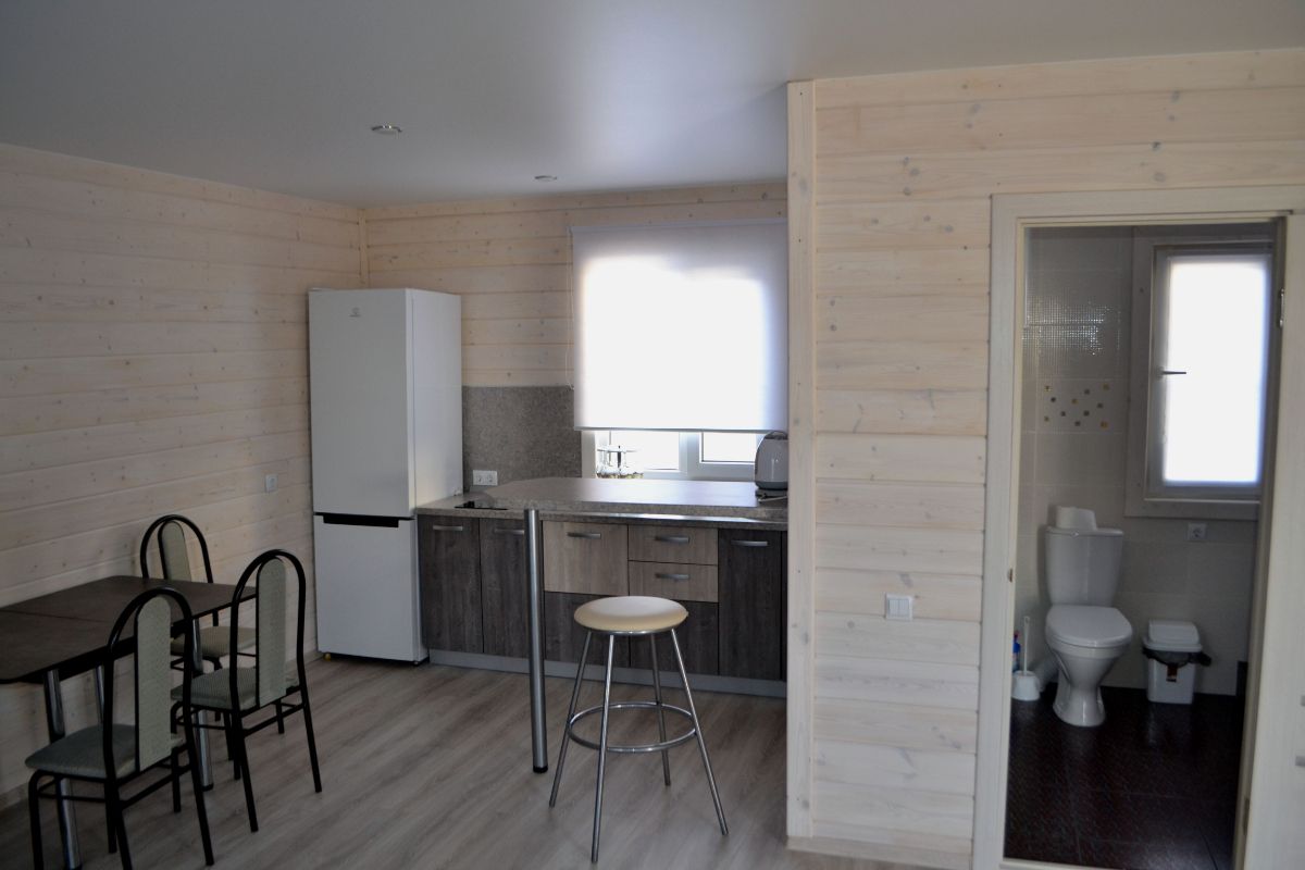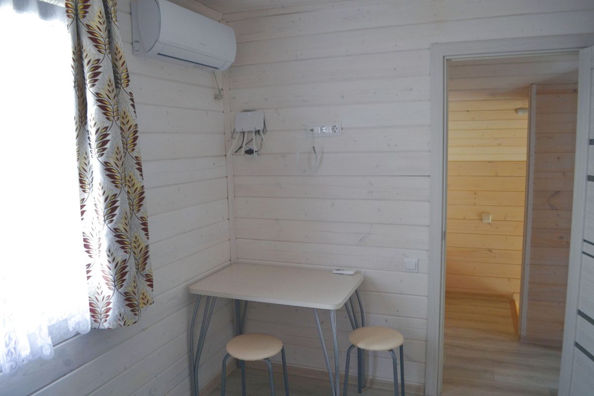 Коттедж рассчитан на комфортное размещение до 6 человек. На первом этаже коттеджа кухня-столовая с удобным 2х спальным диваном, просторный санузел с душем. На втором этаже - небольшая комната с двумя кроватями и вторая спальня с двуспальной кроватью,с выходом на балкон, туалет.