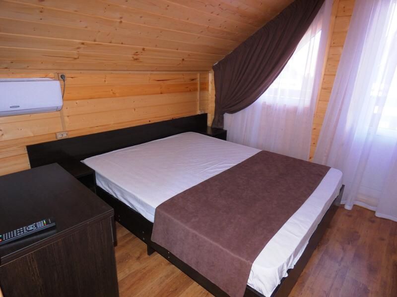 Комплекс представляет собой большой огороженный участок с отдельными 2х этажными домами. Путь на пляж занимает 10 минут. Это тихое место вдали от оживленной курортной зоны и щумных ночных развлечений. На территории комплекса 5 домов. Дома построены из деревянного бруса и имеют полностью деревянную отделку интерьера.