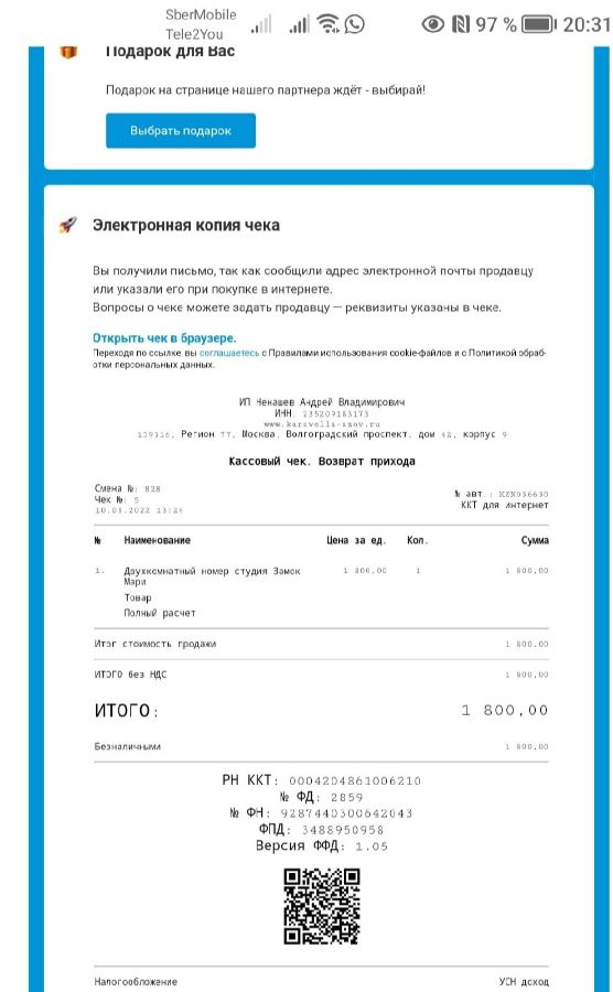 Делали бронь на замок Мари, по личным причинам решили не ехать в этом году. Написали, и нам сразу вернули предоплату. Приложу чек с возвратом. Так что можно не боятся всё до копеечки вернут!